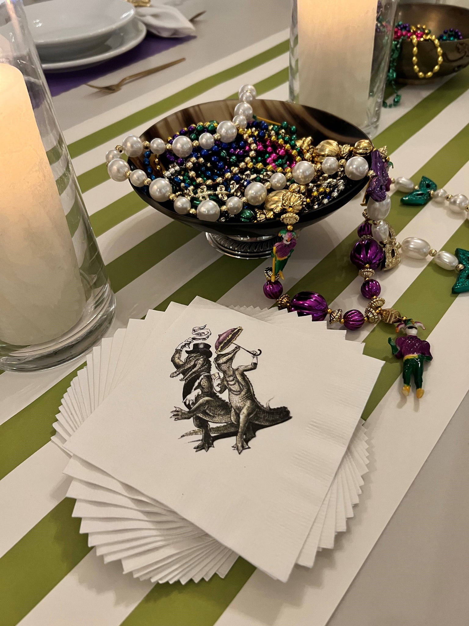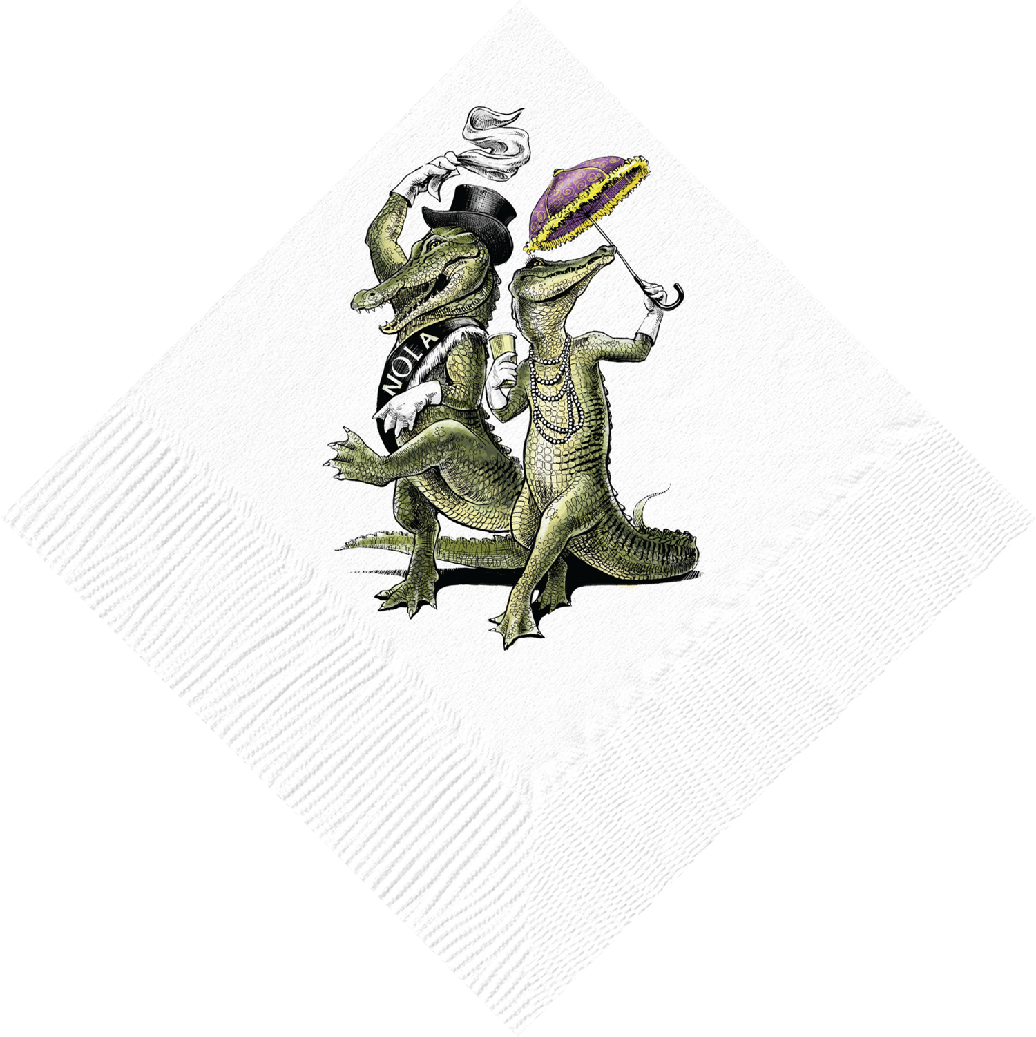 Make every hour a happy hour! These whimsical second line alligator cocktail napkins are a wonderful addition to any Mardi Gras celebration or wedding — whether you’re hosting 2 or 200.