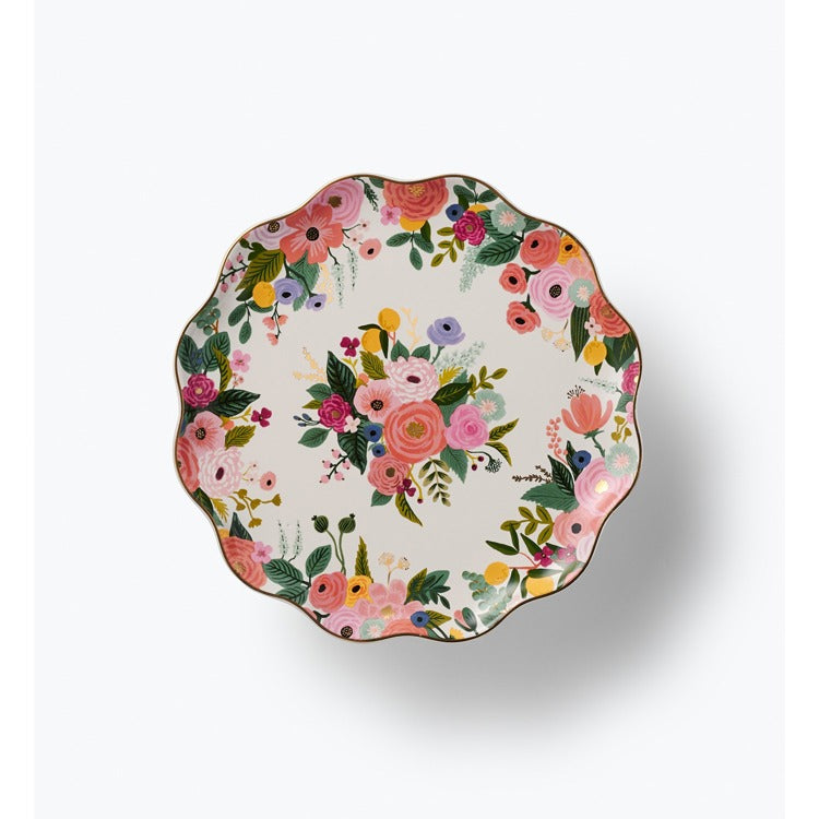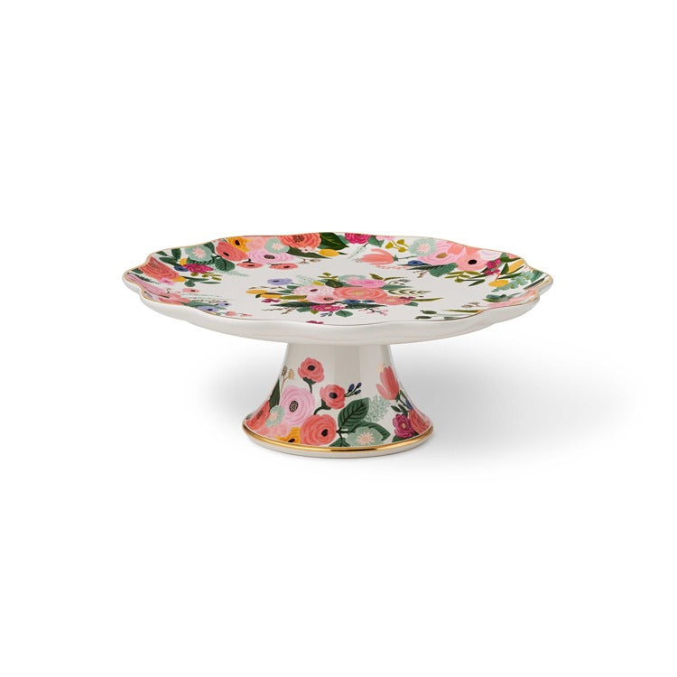 Give your cake, pie, or dessert a little extra fanfare with this illustrated cake stand, featuring Garden Party florals and gold foil accents.