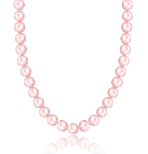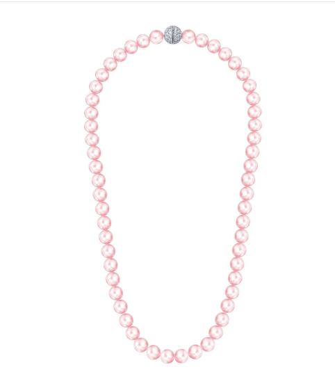 This 18" necklace features large pink shell pearls. Elegantly crafted in .925 sterling silver and finished in pure platinum, with a strong magnetic clasp.