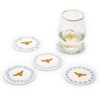 These absorbent, disposable coasters will protect while adding a decorative touch to any bar, coffee table, or dining table. Each set includes 4 bee designs perfectly packed in a gift box ready to be gifted.