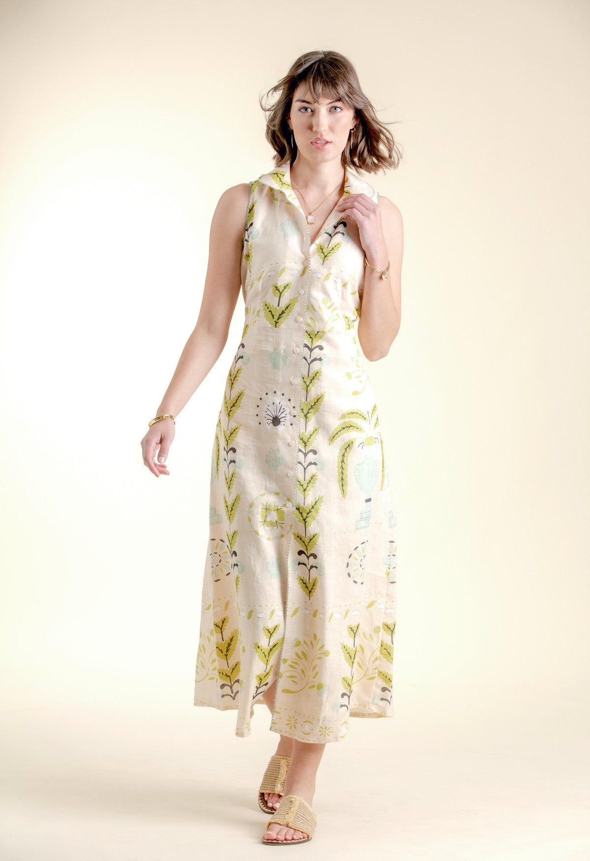 The Renee Midi Dress is our sleeveless collared number that is perfect for a bridal brunch, an afternoon in the park, and any occasion in between. It’s easy to see why: a flattering collared neckline with faux shell buttons down the center, fabulously functional hidden pockets, and a midi length that looks perfect styled with one of our belts. Plus, Renee is lined! The Mercer House vase pattern and neutral base make this dress the perfect transition piece for your wardrobe.