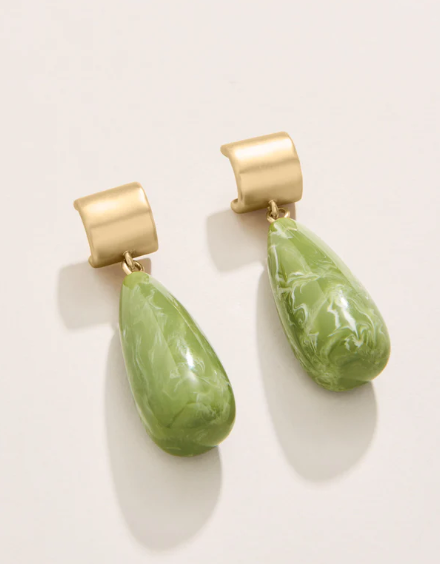 Lightweight marbled resin dew drops drip from 18kt matte gold cuffs for a colorful take on a classic style. Please note: This design features handmade resin and each piece is one-of-a-kind. Colors and patterns may vary slightly from the image shown.
