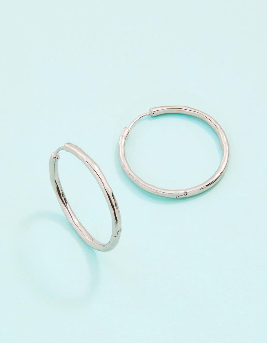 These lightweight, delicately textured hoops are an everyday must-have. Literally, wear them every day. This tarnish-free, water-resistant jewelry is designed to shine through everyday wear, exercise, showers, and a summer at the beach.
