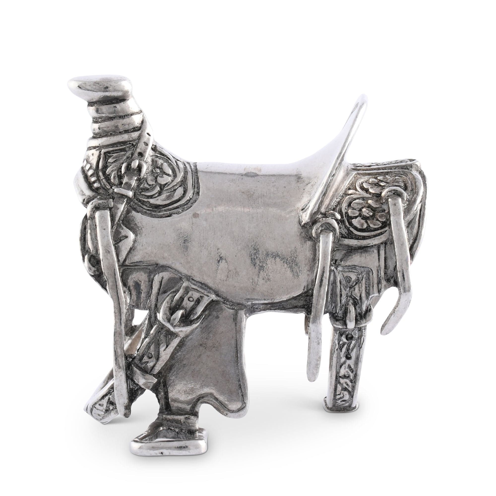 - Hand-finished pewter detailing mimics authentic saddle design