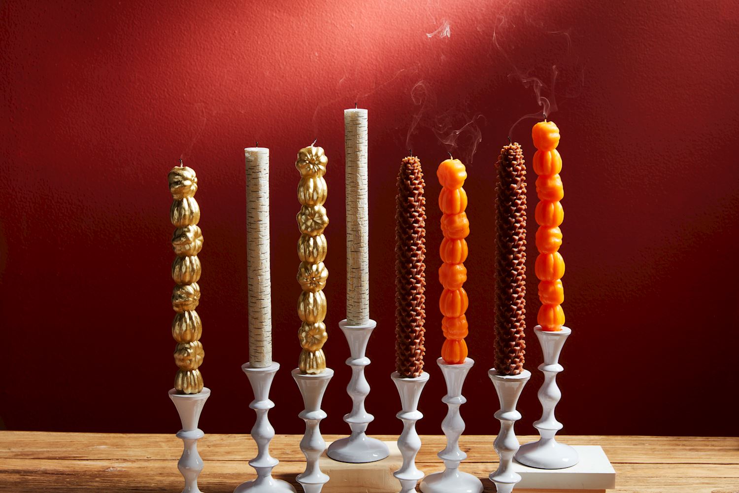 Bring the essence of fall into your home with these Taper Candle Sets. These beautifully crafted candles feature a realistic design, perfect for adding a natural, woodland charm to your autumn and winter decor.
