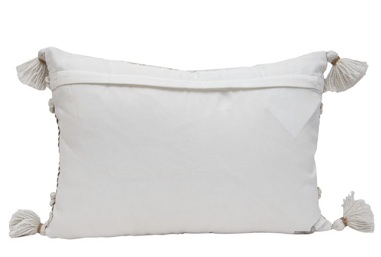 A modern take on a traditional design. The modern patchwork plaid design and pulled yarns create textural stripes. The multiple neutral brown tones give the pillow a warm aesthetic. Suitable for both indoor and out and made of recycled PET plastic with quality you can feel. Hand woven by artisans in India. MATERIAL: Polyester with Polyester Fill